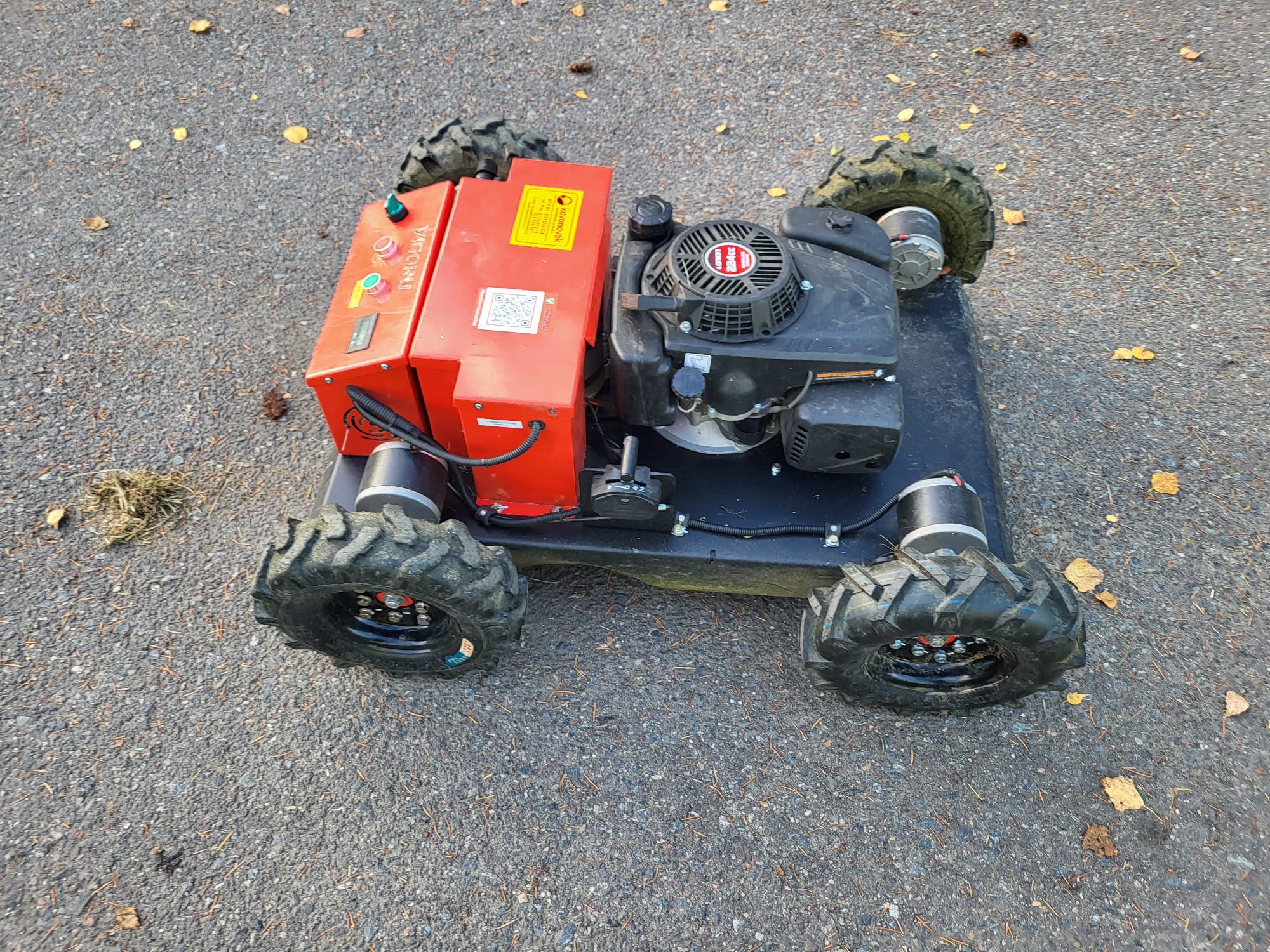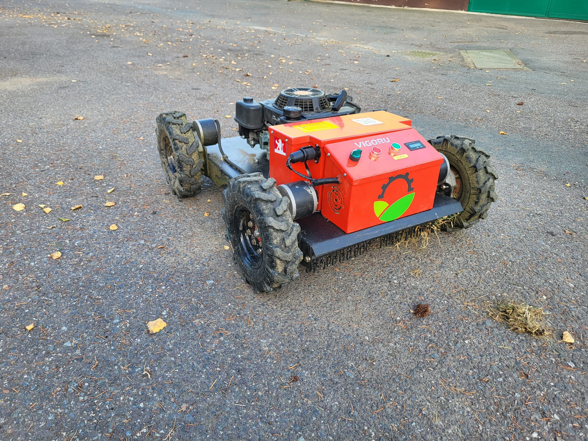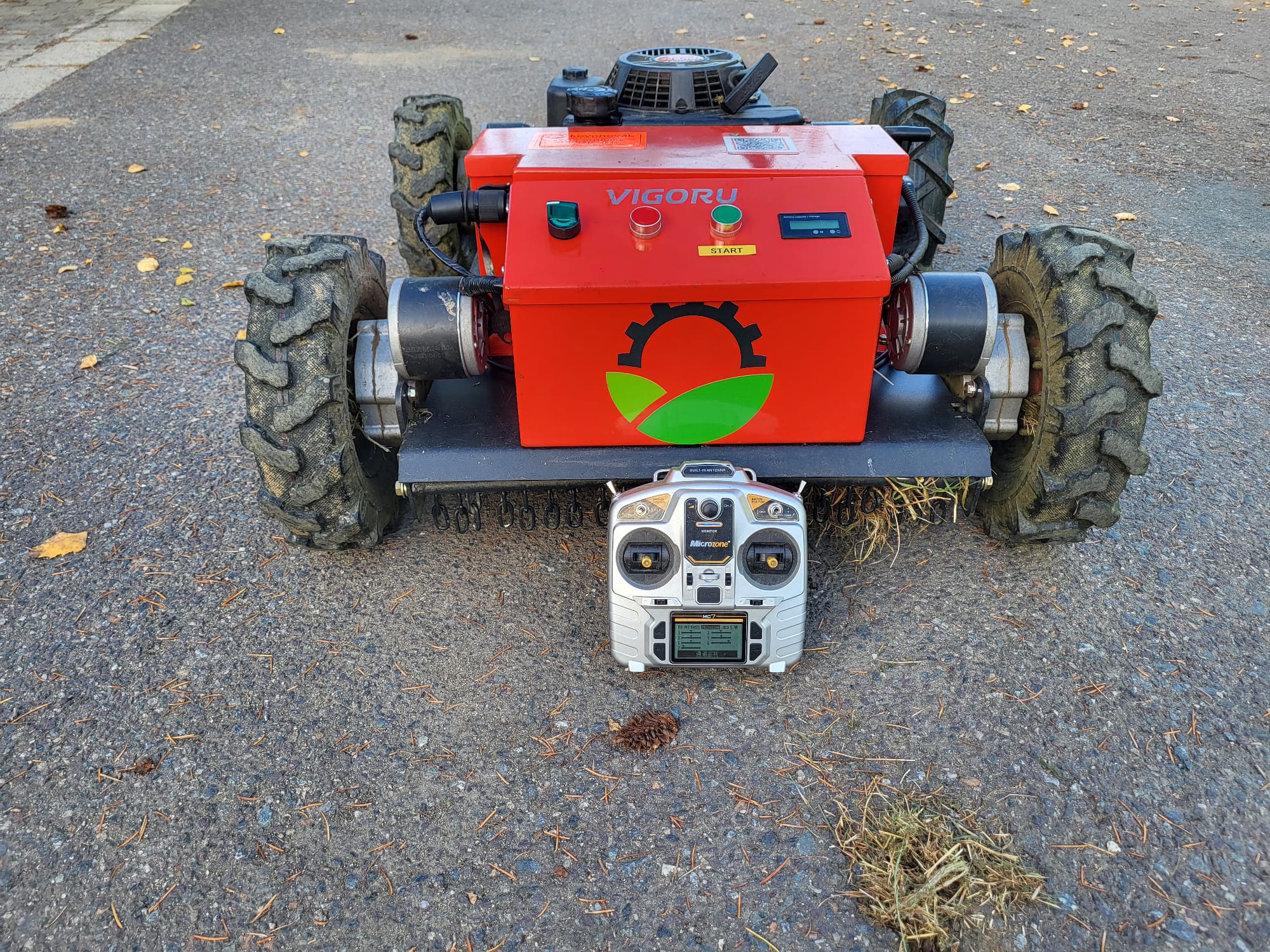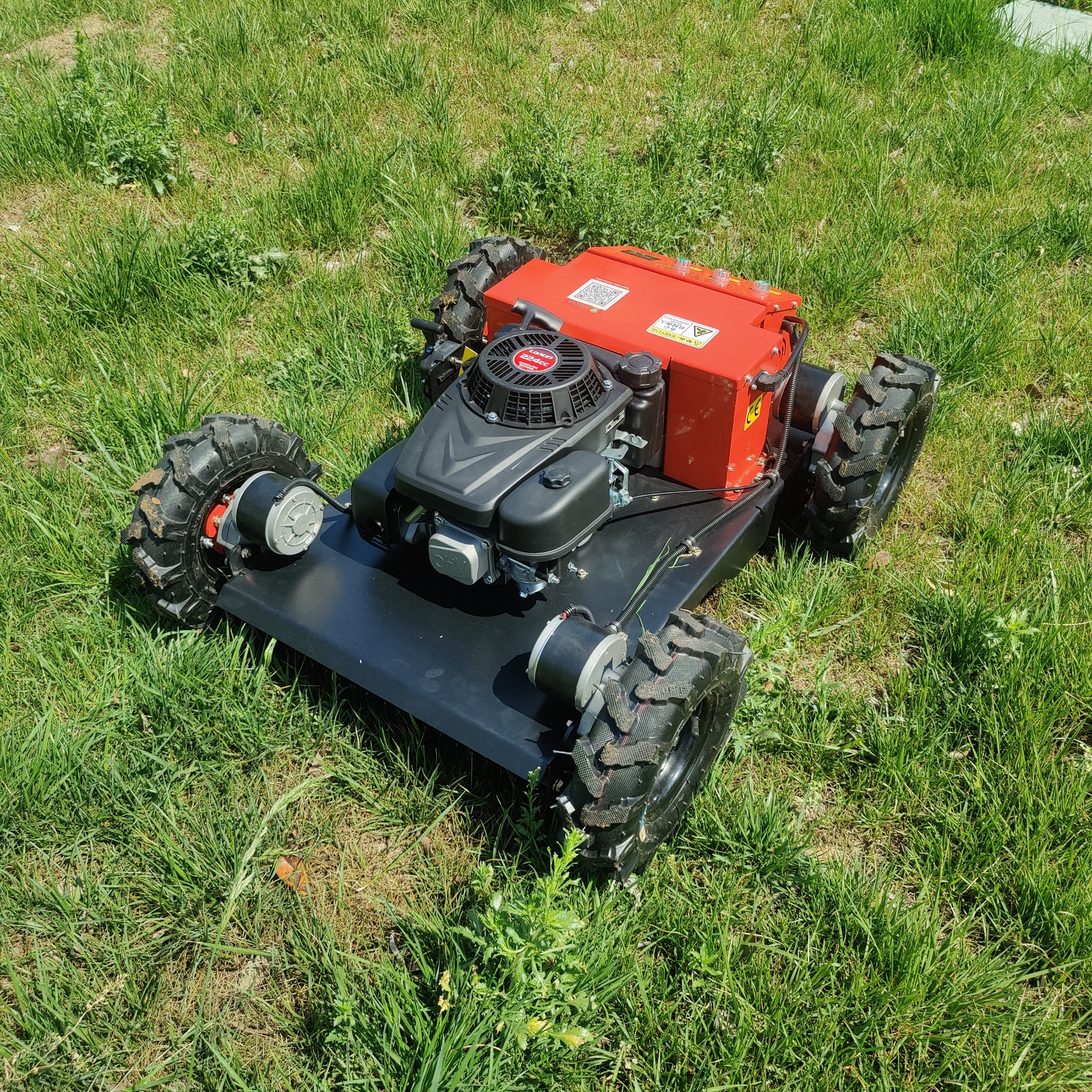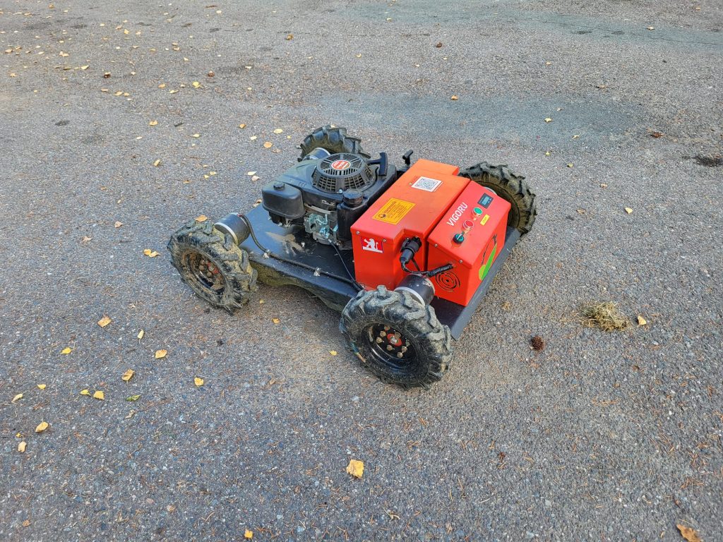 Négyütemű, benzines fűnyíró távirányítóval és elektromos meghajtású kerékkel. Ez a fűnyíró kifejezetten szűk és egyenetlen terepek, meredek lejtők,árokpartok, folyópartok, szőlőskertek, kertek, játszóterek, futballpályák stb. rendben tartására kiváló. Sebessége 0-6 km/h, két szabályozható sebességfokozattal, maximális szög munka közben 40 fok.